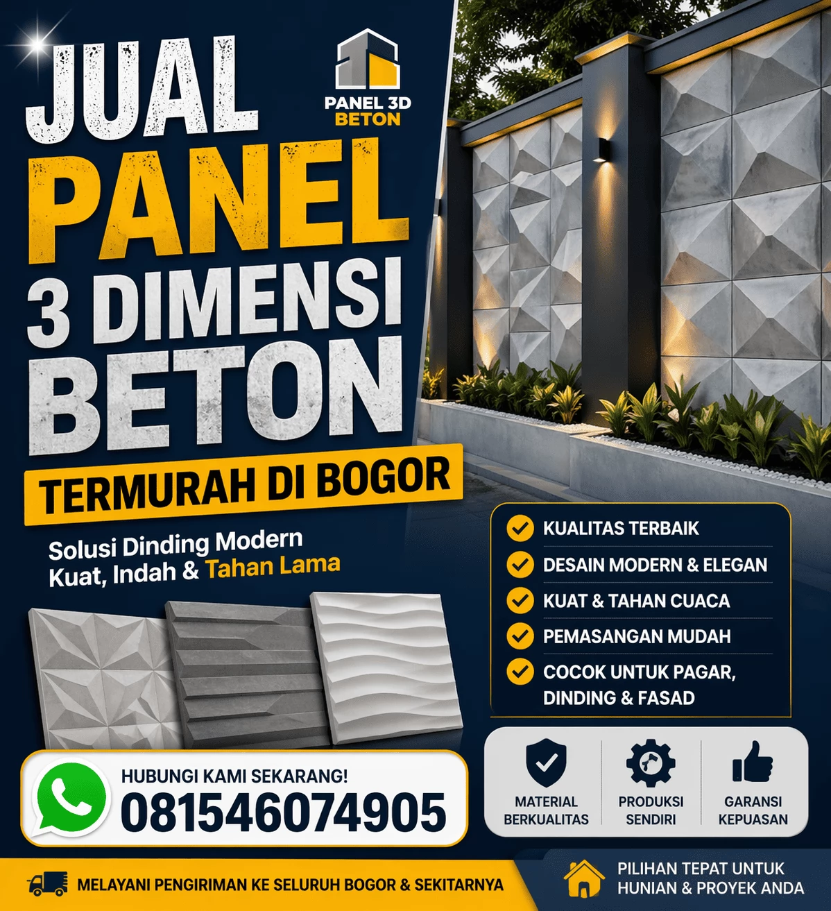 Kami menyediakan layanan jual panel 3D beton termurah di Jonggol Bogor dengan keunggulan:
