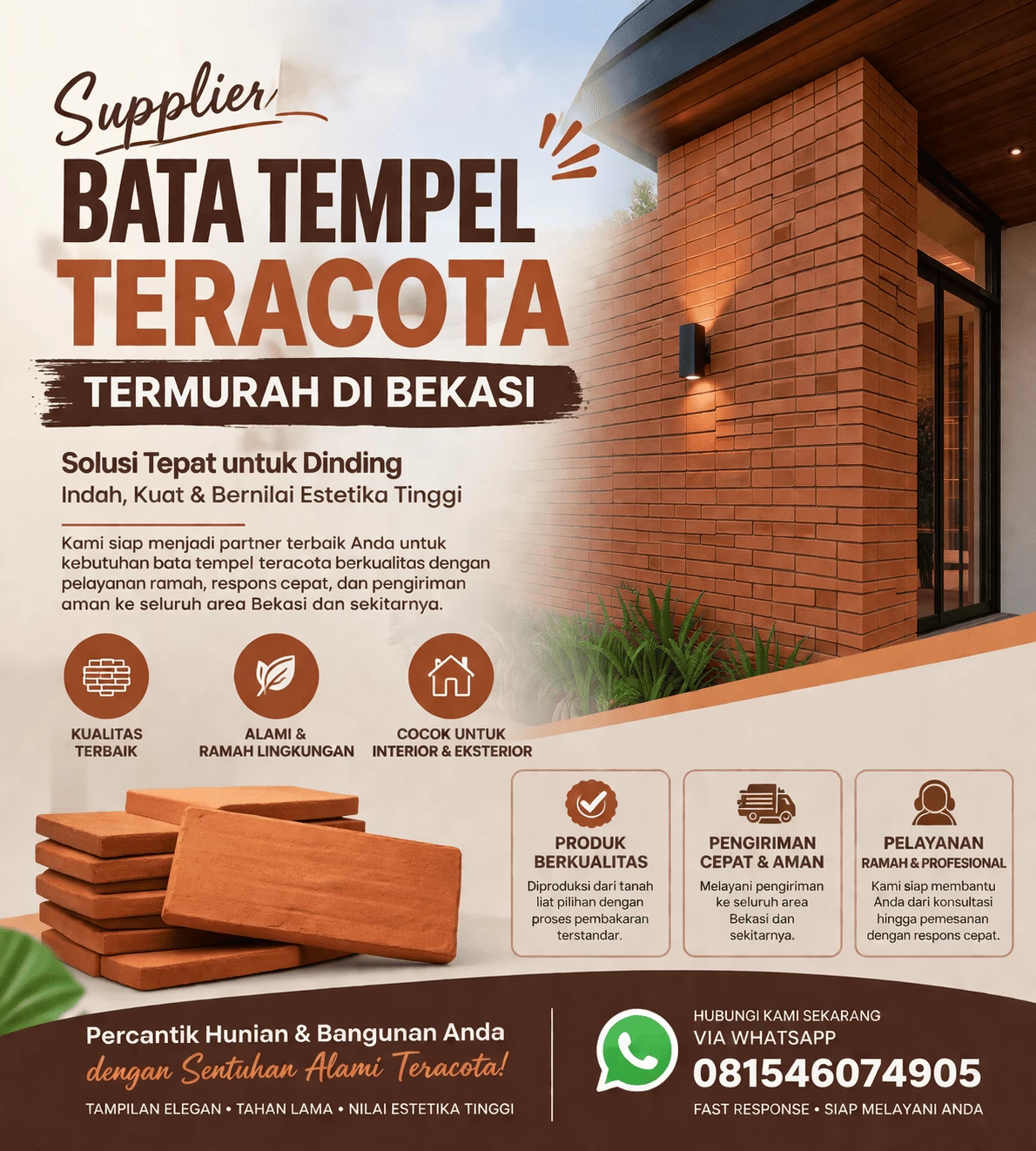 Kami adalah supplier terpercaya yang menyediakan bata tempel teracota berkualitas dengan stok lengkap, harga bersaing, dan pengiriman cepat ke seluruh wilayah Kranji Bekasi. Dengan pengalaman melayani banyak pelanggan, kami memahami kebutuhan material bangunan yang kuat, estetik, dan bernilai tinggi.